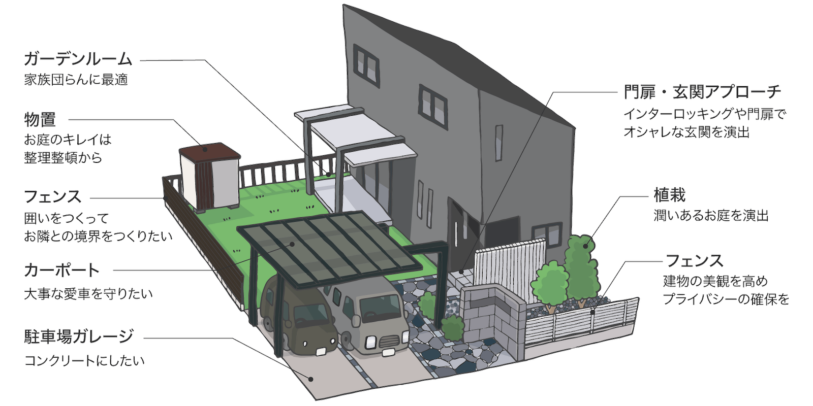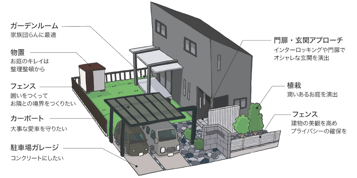 家の印象を大きく左右する外構。調和のとれた美しい環境を作り出すことが大切です。山沢建設は、確かな技術と豊富な経験を活かしご希望を形にします。